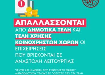 Για να επωφεληθούν της σχετικής απαλλαγής, οι επαγγελματίες, πρέπει να υποβάλλουν στην αρμόδια υπηρεσία του Δήμου μας ή ηλεκτρονικά στη...